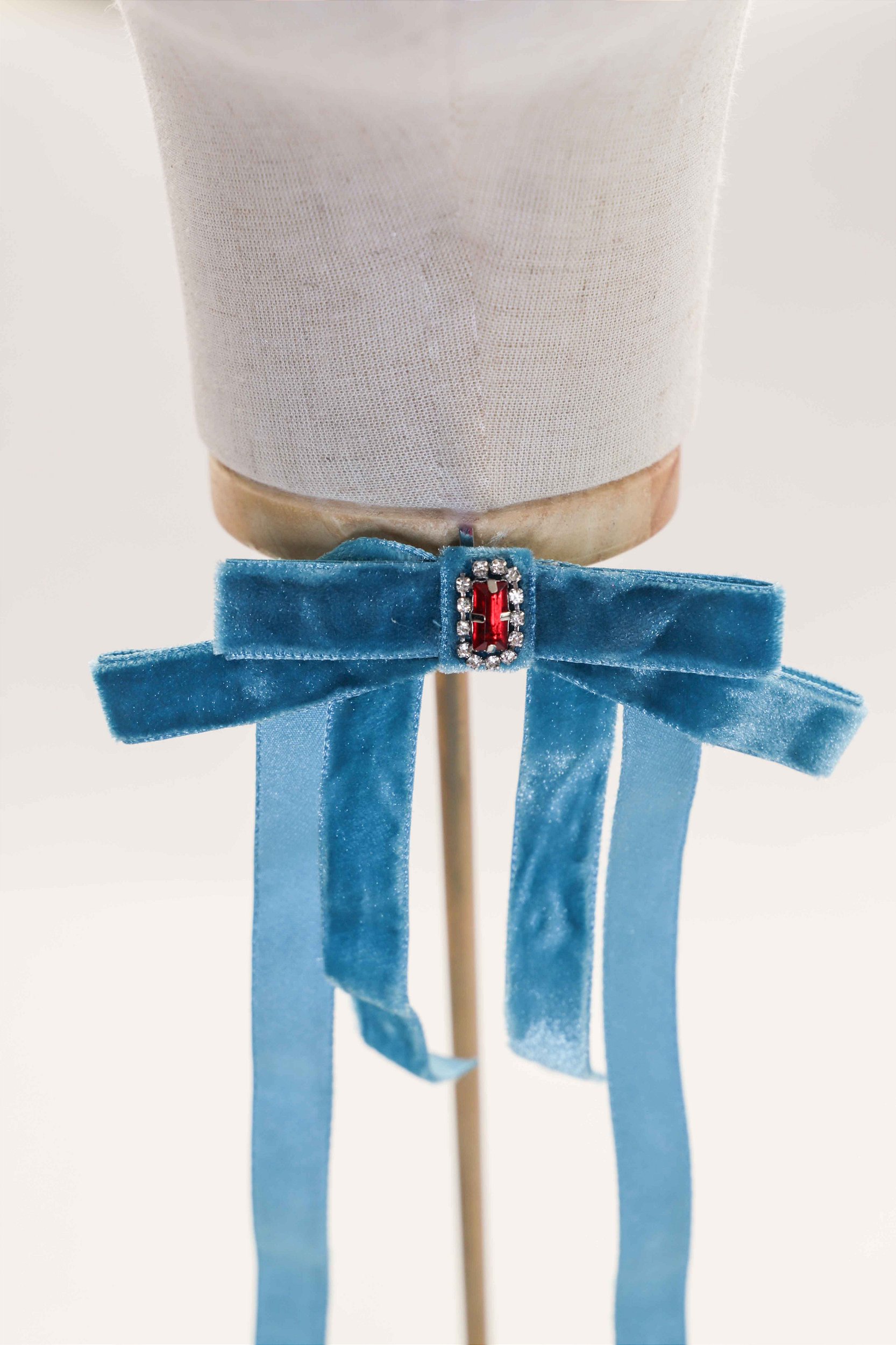 O JC Laço Veludo Rastro de Luz — Petit Lúmina (Azul Turquesa) combina a intensidade da cor ao toque sofisticado do veludo.