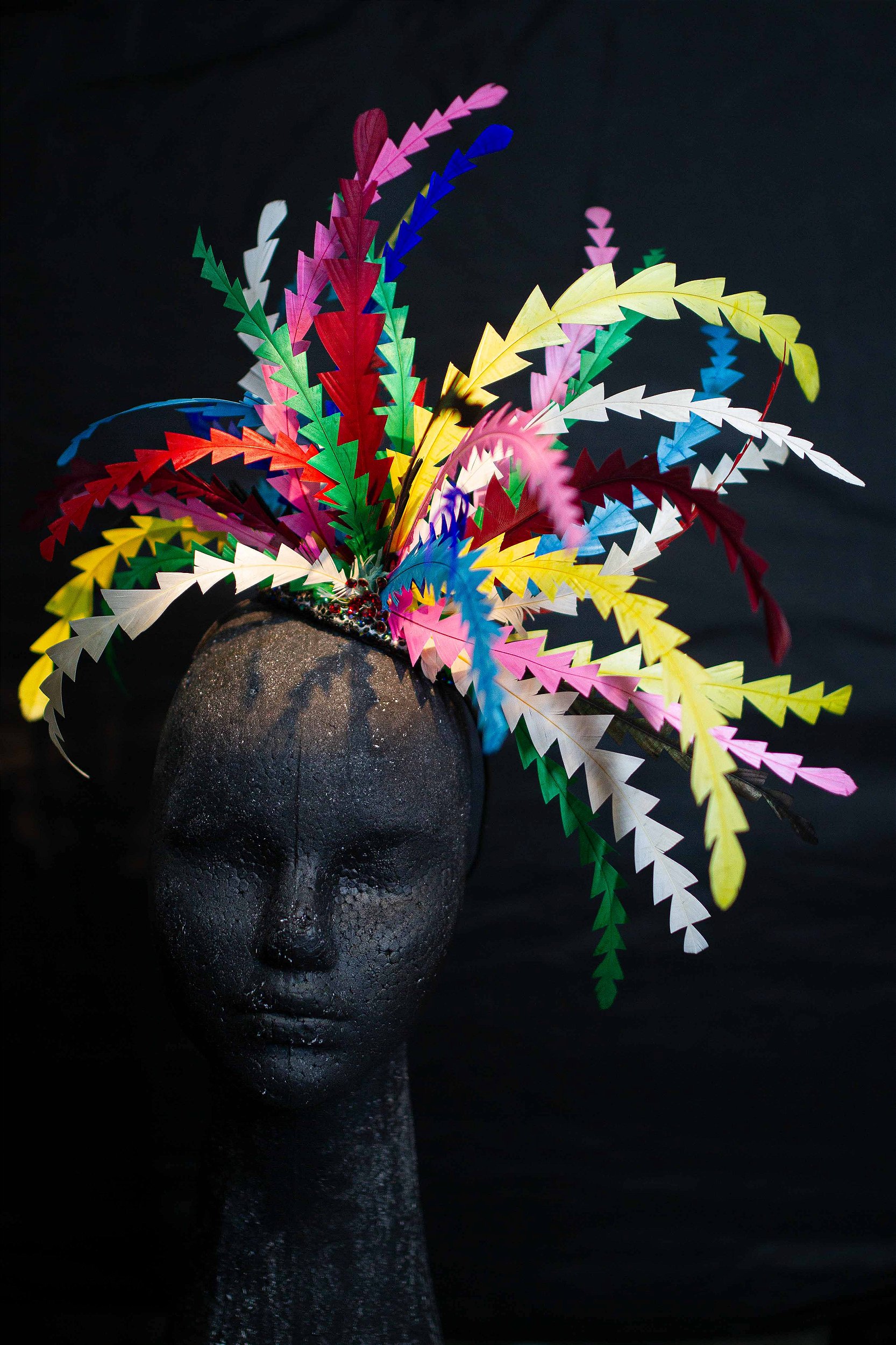 A JC Prisma é um mini casquete com fuês colors feitos à mão, que criam impacto visual leve e contemporâneo. Uma peça de presença, confortável e cheia de identidade, pensada para quem quer brilhar com personalidade na avenida.