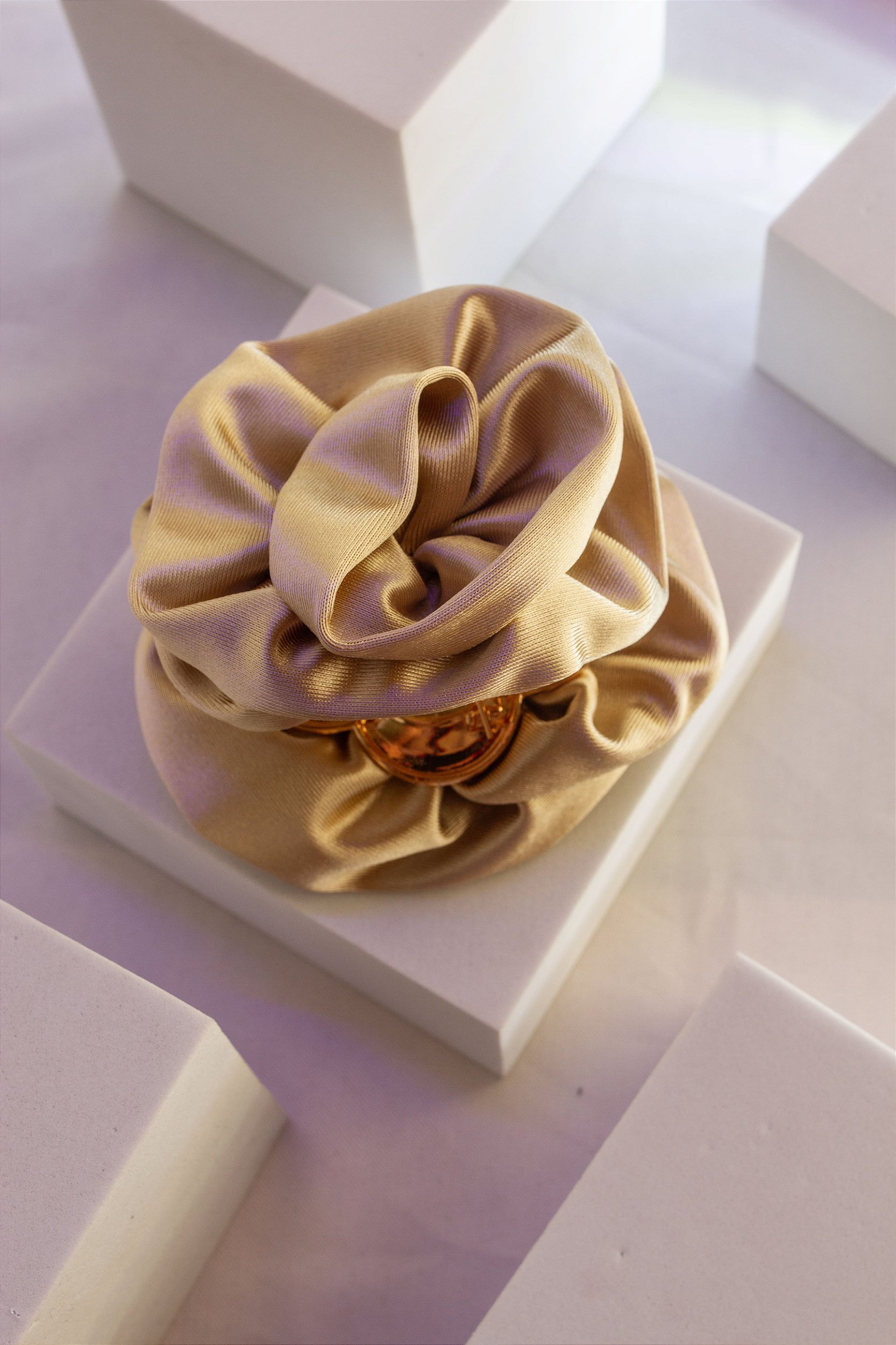 Entre as criações, destaca-se a JC Piranha Flor Alice, uma verdadeira joia artesanal. Feita com tecido cintilante e flores esculpidas manualmente, essa peça única combina delicadeza e sofisticação. Sua base de metal dourado com banho garante um acabamento refinado, tornando-a perfeita para quem busca um acessório elegante e exclusivo.