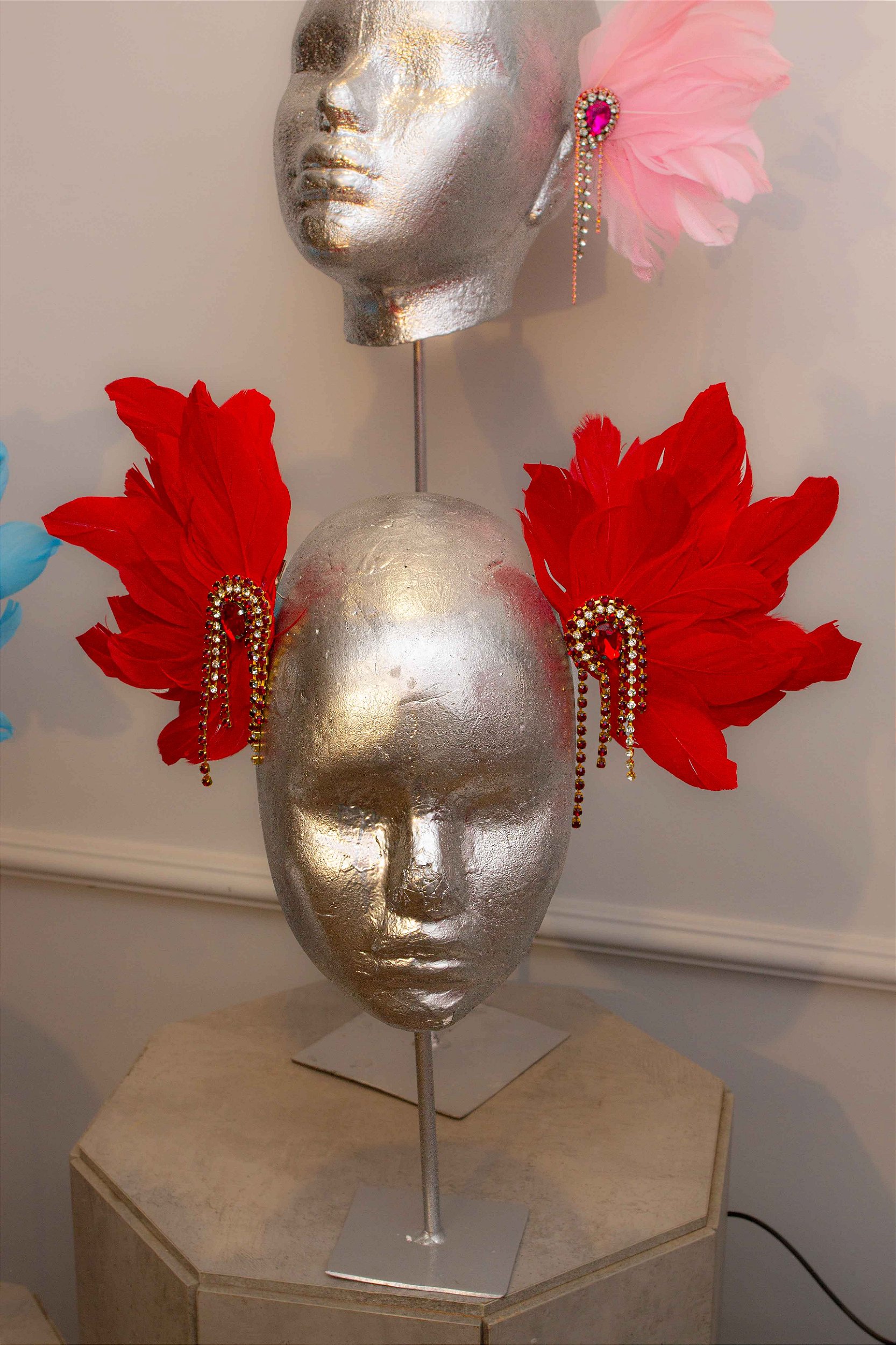 Código: JC-Voo-Leque-de-vermelha-penas-e-cristais